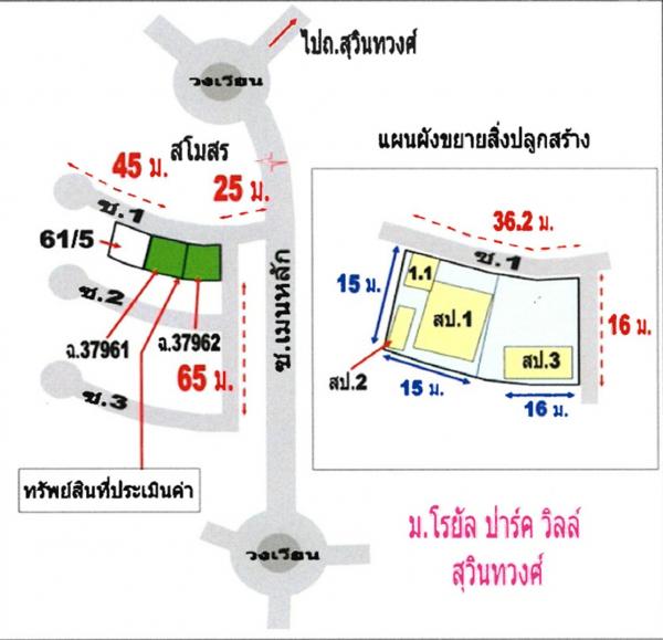 ที่ตั้งทรัพย์ :ที่ดินพร้อมสิ่งปลูกสร้าง โรยัล ปาร์ค วิลล์ เลขที่ 61/1 สุวินทวงศ์เข้า ซอยสุวินทวงศ์ 44 แขวงลำผักชี เขตหนองจอก กรุงเทพมหานคร