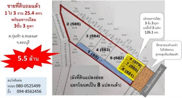 "หากกำลังมองหาที่แปลงสวยๆ พร้อมอาคารพักอาศัยและออฟฟิศเหมาะสำหรับทำธุรกิจวัสดุก่อสร้าง รับเหมาก่อสร้าง เชิญทางนี้ ขายที่ดินถมแล้ว ในอ.หนองแค เนื้อที่ขนาด 1-3-25 ไร่ ติดถนนเลียบคลองระพีพัฒน์ ถมสูงเสมอถนน มีทางเข้าออกและจอดรถหน้าที่ดินสะดวกมาก ขายพร้อมทาวน์โฮม 3 ชั้น 3 คูหา เข้าอยู่อาศัยได้เลย ราคา 5.5 ล้านบาท