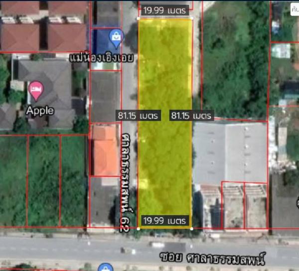 ขายที่ดิน ศาลาธรรมสพน์ซอย 62 เนื้อที่ดิน 1 ไร่ (400 ตรว.)