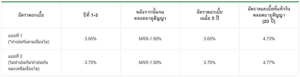 - *เงื่อนไขการทำประกันชีวิตคุ้มครองสินเชื่อบ้าน (อัตราดอกเบี้ยแบบที่ 1 และแบบที่ 3) สำหรับลูกค้าที่ทำประกันชีวิตคุ้มครองสินเชื่อบ้าน ตามเงื่อนไขดังนี้