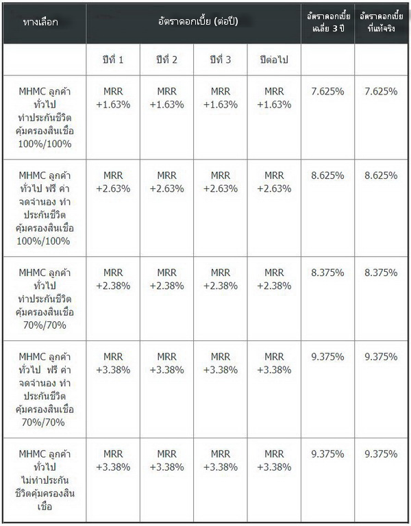 - อัตราดอกเบี้ยที่แท้จริง (Effective Interest Rate) คำนวณจากวงเงินกู้ 1 ล้านบาท อายุสัญญา 20 ปี