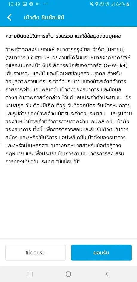 3. ทำการสแกนบัตรประชาชน (คุณต้องเตรียมบัตรประชาชนมาสแกนบัตรประชาชนด้วย) เมื่อสแกนบัตรประชาชนติดแล้ว ให้กรอกชื่อ นามสกุล วันเกิดตามหน้าบัตร และใส่ข้อมูลหลังบัตร ( Laser ID ) เสร็จแล้วแตะยืนยัน