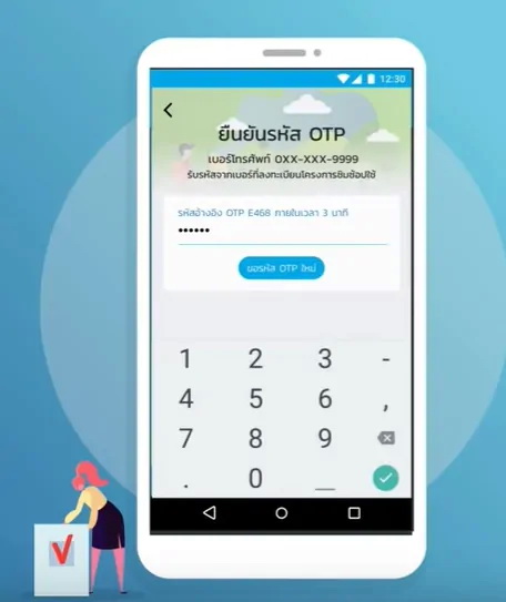 4. ระบบจะส่ง SMS-OTP มายังเบอร์มือถือคุณ ให้กรอกหมายเลข OTP ลงแอปเป๋าตัง