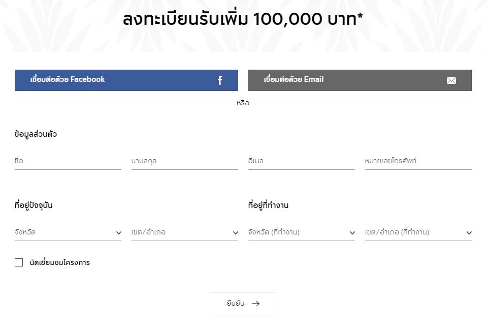 คลิกด้านล่างเพื่อลงทะเบียนรับเพิ่ม 100,000 บาท*