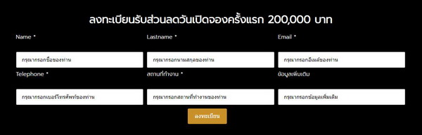 คลิกด้านล่างลงทะเบียนรับส่วนลด 200,000 บาท เพื่อใช้ในวันเปิดจองครั้งแรก