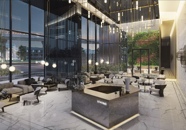 FEEL A LUXURIOUS WELCOME AMIDST NATURE ต้อนรับทุกวันด้วยบรรยากาศอบอุ่นและสง่างามกับ Grand Lobby ที่ถูกออกแบบให้เชื่อมต่อกับ Semi-Outdoor Lobby ซึ่งถูกโอบล้อมด้วย Green Wall และ Water Feature ให้คุณได้ใกล้ชิดธรรมชาติอย่างเต็มอิ่ม