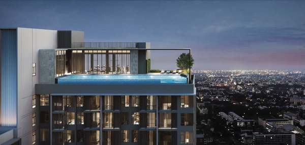 LET THE BLUE SKY BE YOUR WORKOUT BACKGROUND ให้สายน้ำพาล่องลอยไปกับความผ่อนคลายที่เย็นฉ่ำ กับ Infinity-Edge Pool พร้อม Jacuzzi หรือออกกำลังกายด้วยอุปกรณ์ครบครันบน Panoramic Sky Fitness ท่ามกลางวิวเมืองสุดสายตาแบบพาโนราม่าทั้ง 2 ด้าน ก็เลือกได้ตามใจคุณ