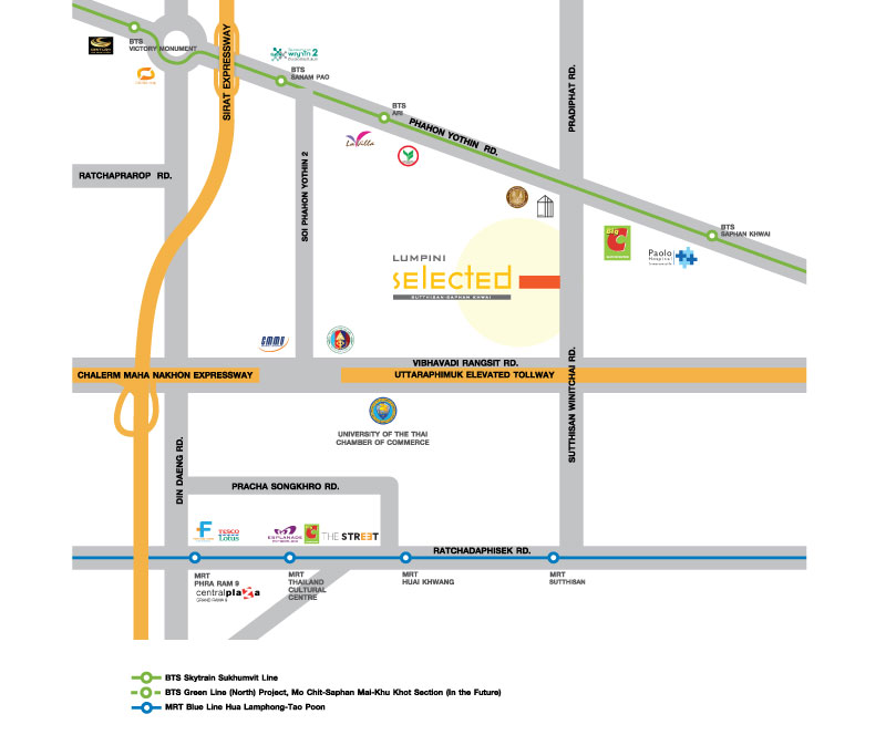 คลิกดูแผนที่โครงการ"ลุมพินี ซีเล็คเต็ด สุทธิสาร - สะพานควาย"