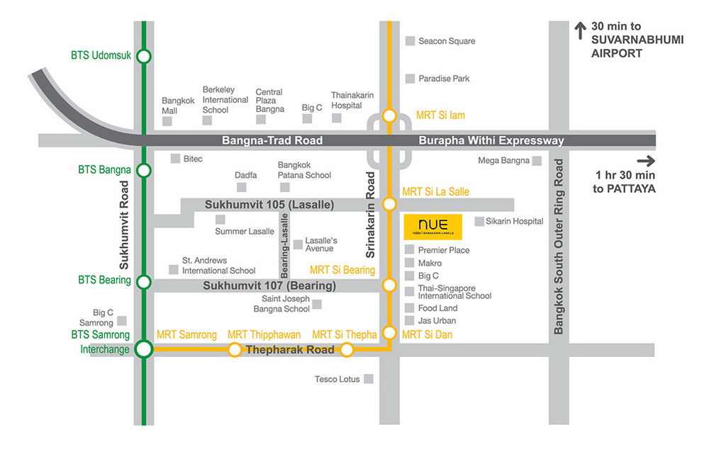 โครงการบนทำเลศักยภาพ ติดถนนศรีนครินทร์ ต.สำโรงเหนือ อ.อำเภอเมืองสมุทรปราการ จ.สมุทรปราการ ติดรถไฟฟ้าสายสีเหลือง MRT สถานีศรีลาซาล ใกล้ถนนเส้นหลัก และ ทางด่วน รายล้อมด้วยแหล่งช้อปปิ้งที่หลากหลาย ใกล้สถานที่อำนวยความสะดวกที่ครบครัน
