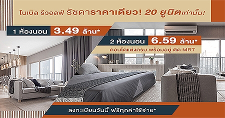 ราคาเดียว! 20 ยูนิตเท่านั้น! "โนเบิล รีวอลฟ์ รัชดา" และ "โนเบิล รีวอลฟ์ รัชดา 2" 2 คอนโดแต่งครบ พร้อมอยู่ ทำเลใกล้กับ Central Plaza พระราม 9 และ ติดกับรถไฟฟ้าอินเตอร์เชนจ์ศูนย์วัฒนธรรม เพียง 80 เมตร