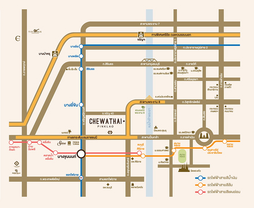 Chewathai ปิ่นเกล้า จาก ชีวาทัย ตั้งอยู่ติดกับถนนอรุณอมรินทร์ แขวงบางยี่ขัน เขตบางพลัด กรุงเทพฯ ใช้ชีวิตแบบ Enjoy Life 360 องศา สัมผัสนิยามของคำว่า "ใกล้ทุกสิ่ง" เดินทางเข้าสู่ใจกลางเมืองที่สะดวกสบายจากสะพานพระปิ่นเกล้าและสะพานพระราม 8 ใกล้ทางคู่ขนานลอยฟ้าบรมราชชนนี ใกล้ทางด่วนศรีรัชและทางด่วนศรีรัช-วงแหวนรอบนอก โครงการอยู่ใกล้รถไฟฟ้าสายสีน้ำเงินสถานีบางยี่ขัน ใกล้สวนหลวงพระราม 8 รายล้อมไปด้วยสิ่งอำนวยความสะดวกครบครันทั้งห้างสรรพสินค้า สถานศึกษา โรงพยาบาล และสถานที่ราชการต่างๆ