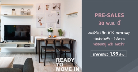 PRE-SALES คอนโด ใกล้รถไฟฟ้า BTS ตลาดพลู เพียง 200 ม. และใกล้สาทร เซล พลัส ตลาดพลู สเตชั่น PREMIUM CONDO WITH 5 PREMIUM REASONS คอนโดใหม่ ใกล้รถไฟฟ้า ใกล้สาทร เพียง 200 ม. ถึง BTS ตลาดพลูโปรโมชั่นพิเศษลงทะเบียนออนไลน์รับเครื่องใช้ไฟฟ้าเพิ่มฟรี! เฟอร์, แอร์, ม่าน*PRE-SALES 30 พฤศจิกายน 2562 นี้*ราคาเดียว! 1.99 ล้านบาท*
