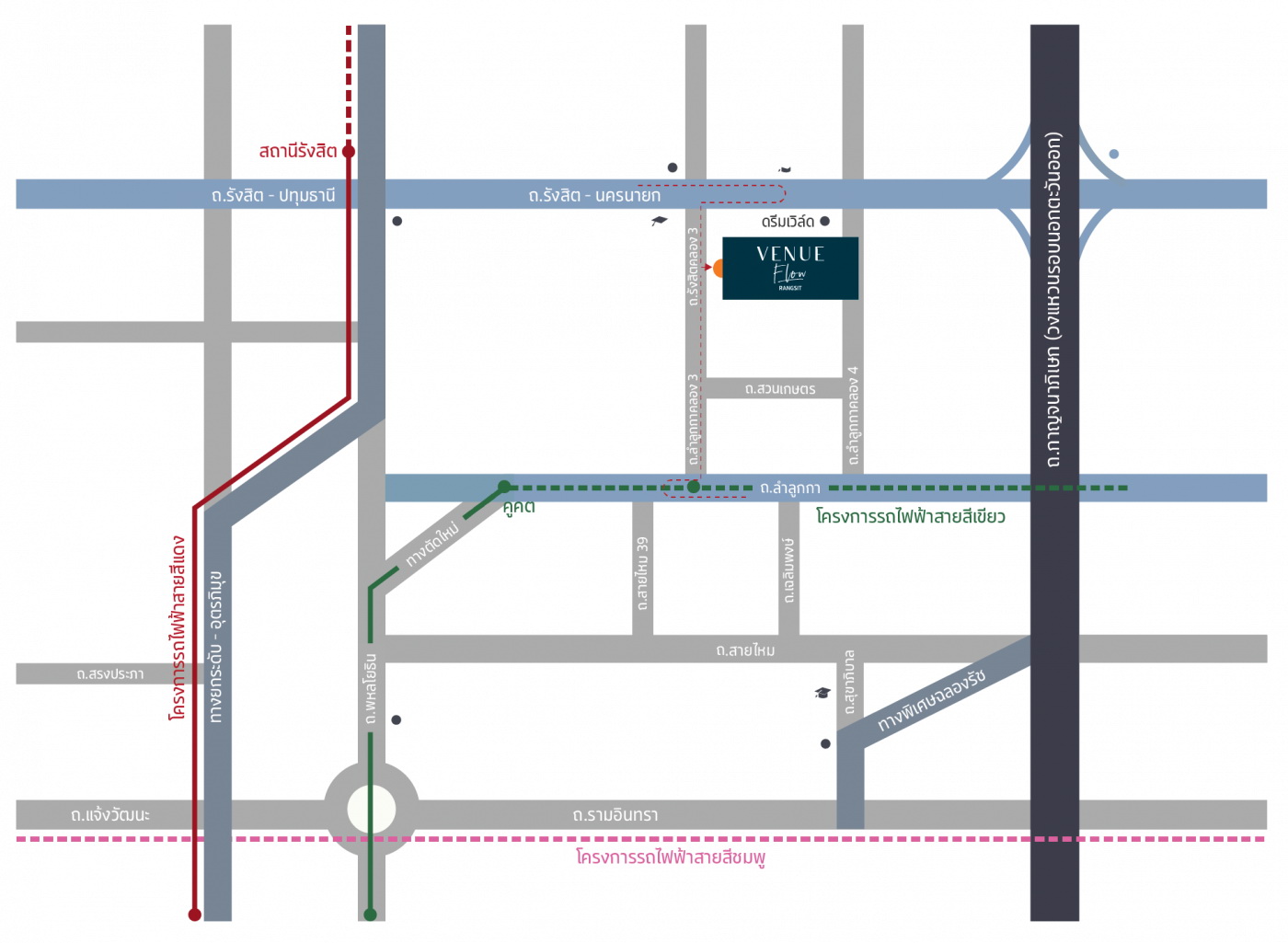 คลิกดูแผนที่โครงการ เวนิว โฟลว์ รังสิต