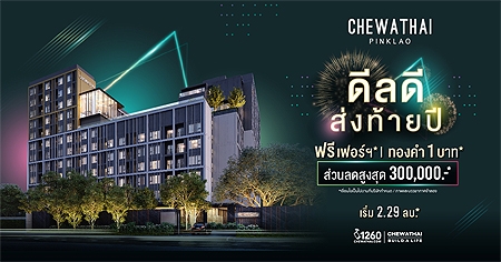 ชีวาทัย จัดดีลดี ส่งท้ายปี กับ "ชีวาทัย ปิ่นเกล้า" คอนโดใหม่ วิวแม่น้ำเจ้าพระยา บนทำเลติดถนนอรุณอมรินทร์ ใกล้ทางคู่ขนานลอยฟ้าบรมราชชนนี ทางด่วนศรีรัชและทางด่วนศรีรัช-วงแหวนรอบนอก และรถไฟฟ้า MRT สายสีน้ำเงิน สถานีบางยี่ขัน พร้อมรับโปรโมชั่นพิเศษ ฟรี! เฟอร์นิเจอร์ + ทองคำ 1 บาท* ส่วนลดสูงสุด 300,000 บาท* ราคาเริ่ม 2.29 ล้านบาท*
