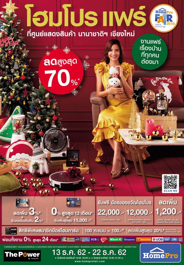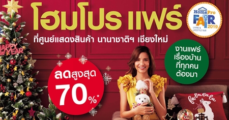 นับถอยหลังสู่มหกรรมความสุขครั้งยิ่งใหญ่ ส่งท้ายปี "โฮมโปร แฟร์ เชียงใหม่" งานแฟร์เรื่องบ้านที่ทุกคนต้องมา ช้อปสนุก สุขีกว่าครั้งไหน กับสินค้าตกแต่งบ้านต้อนรับทุกเทศกาล ลดราคาสูงสุดกว่า 70% พร้อมโปรโมชั่นสุดพิเศษต้อนรับลมหนาว คุ้มค่า ครบครัน อาทิ SHOCK Price!! สินค้าราคาสุดช็อค หมดแล้วหมดเลย ทั้ง เครื่องทำน้ำอุ่น, ชุดที่นอน-ผ้าห่ม, เฟอร์นิเจอร์, เครื่องใช้ไฟฟ้า