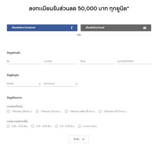 ลงทะเบียนรับส่วนลด 50,000 บาท ทุกยูนิต*