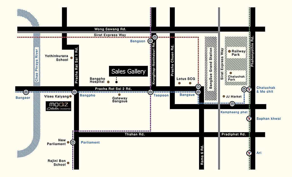 คลิกดูแผนที่โครงการ Modiz Collection Bangpho
