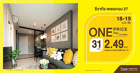 "ชีวาทัย เพชรเกษม 27" คอนโด High-Rise สูง 26 ชั้น แต่งครบพร้อมอยู่ ติดถนนใหญ่เพชรเกษม ตรงข้าม มหาวิทยาลัยสยาม ใกล้รถไฟฟ้า BTS และ MRT บางหว้า เพียง 300 เมตร พร้อมรับโปรโมชั่นพิเศษ เฟอร์นิเจอร์ครบ* + บัตรรถไฟฟ้าฟรี 1 ปี* พบกัน 18 - 19 มกราคม 2563 นี้ ราคาเดียว 2.49 ล้านบาท*