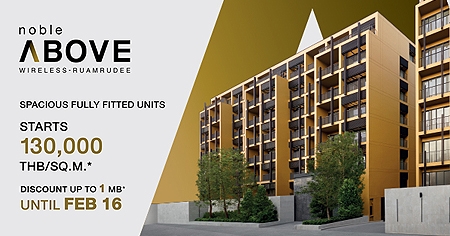 Noble Development เปิดจอง "โนเบิล อเบิฟ ไวร์เลส-ร่วมฤดี" คอนโดใหม่ สร้างเสร็จ พร้อมอยู่ เป็นคอนโด 8 ชั้น 2 อาคาร มาพร้อมสิ่งอำนวยความสะดวกครบครัน ทำเลใกล้ถนนวิทยุ และรถไฟฟ้า BTS เพลินจิต