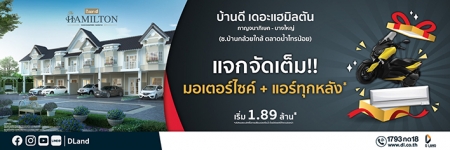 ค่ายดี-แลนด์ กรุ๊ป ขยายฐานรับดีมานด์ที่อยู่อาศัยฝั่งนนทบุรีต่อเนื่อง โดยหัวเรือใหญ่ นายศิริพงษ์ สมบูรณ์ กรรมการผู้จัดการ บริษัท ดี-แลนด์ กรุ๊ป จำกัด จัดแคมเปญต้อนรับปีใหม่ลูกค้ากับโครงการ "บ้านดี เดอะแฮมิลตัน กาญจนาภิเษก บางใหญ่" (ซ.บ้านกล้วยใกล้ ตลาดน้ำไทรน้อย) โปรโมชั่นแจกจัดเต็ม! แจกมอเตอร์ไซค์ และแอร์ ทั้งหลัง เริ่มต้นเพียง 1.89 ล้านบาท*