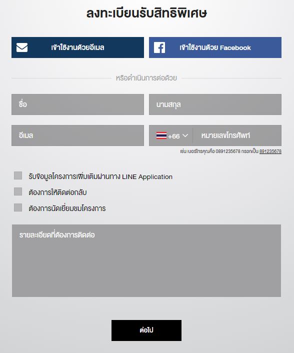 คลิกด้านล่างเพื่อลงทะเบียนรับสิทธิพิเศษ