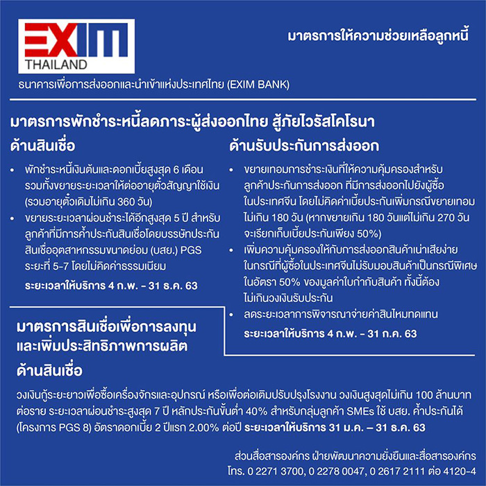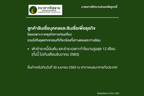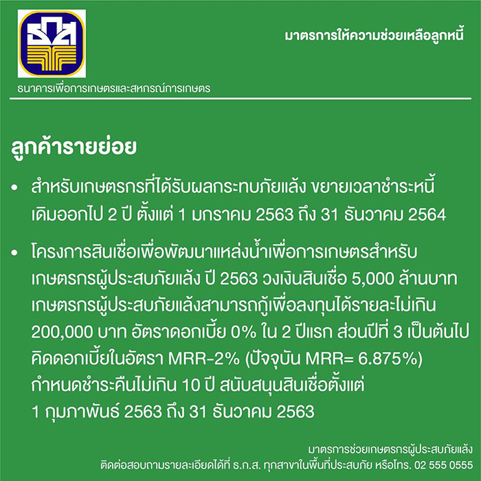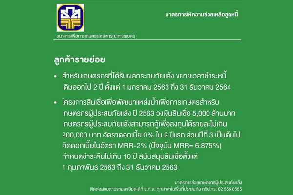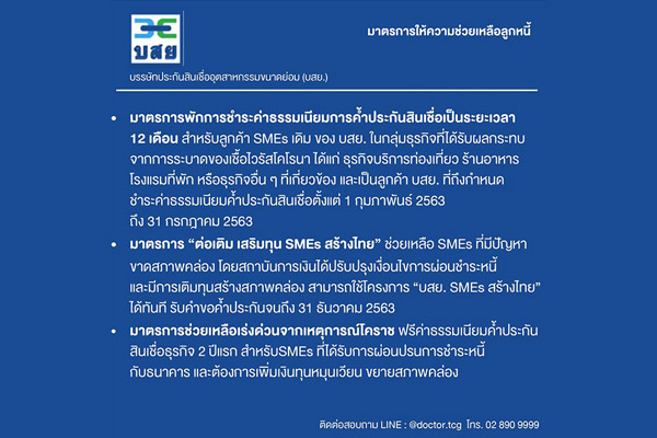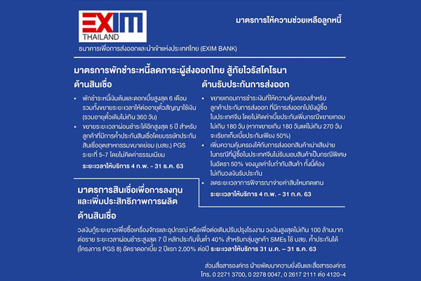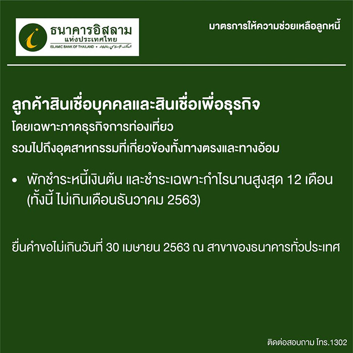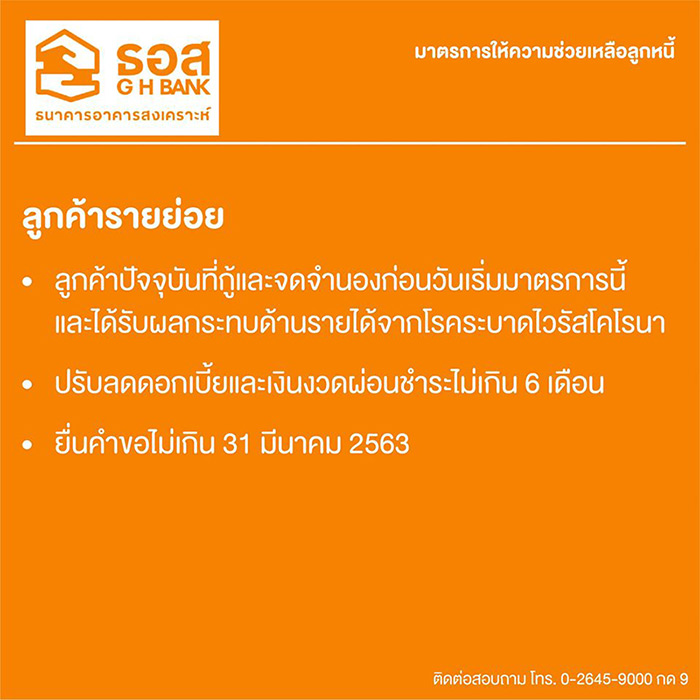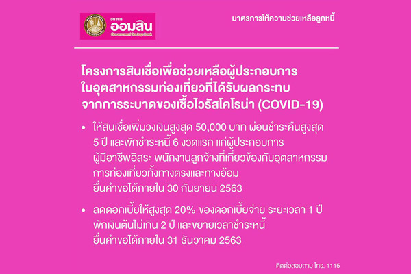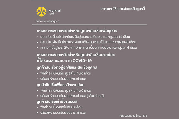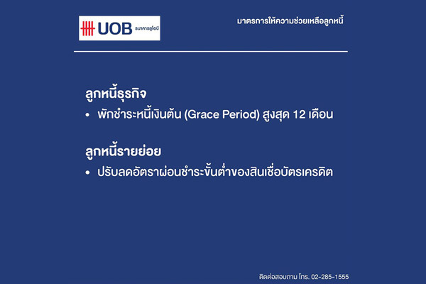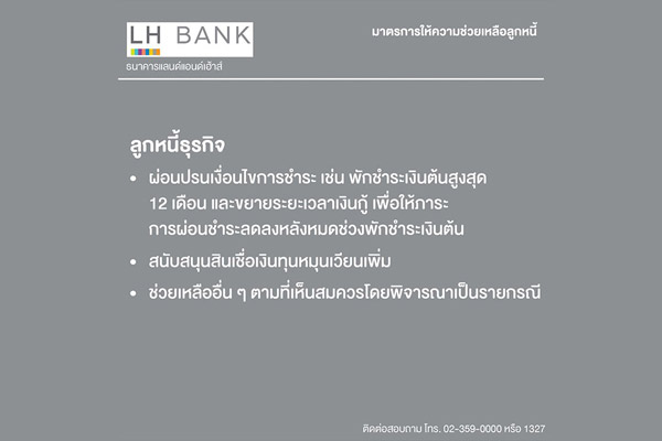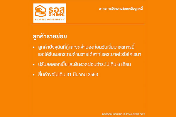 ธนาคารแห่งประเทศไทย เปิดเผยว่า แบงก์ชาติได้ติดตามสถานการณ์ต่าง ๆ รวมทั้งการแพร่ระบาดของโรคโควิด-19 ที่มีแนวโน้มลุกลามและส่งผลกระทบรุนแรงในวงกว้างต่อธุรกิจ รวมถึงประชาชนทั่วไป จึงได้ร่วมกับสถาบันการเงิน กำหนดมาตรการช่วยเหลือเพิ่มเติมแก่ลูกหนี้ธุรกิจทุกประเภทและครัวเรือนที่ได้รับผลกระทบจากเหตุการณ์ดังกล่าว