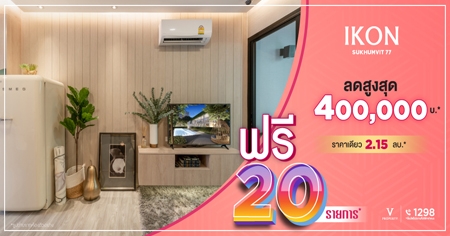 เปิดจองเฟสใหม่ คอนโดแต่งครบ ใกล้ BTS อ่อนนุช รับโปรฯ ฟรี 20 รายการ ไอคอน สุขุมวิท 77 คอนโดใหม่ตอบโจทย์ชีวิตเมือง ส่วนกลางระดับพรีเมียม 24 ชม.เปิดประสบการณ์ใช้ชีวิตแบบ Ikonic Living คอนโดใหม่แต่งครบ ติด Community Mall 3 นาที บนเส้นทางลัดสู่ BTS อ่อนนุชโปรโมชั่นพิเศษลดสูงสุด 400,000 บาท*ฟรี ของแถม 20 รายการ*ราคาเดียว เริ่ม 2.15 ล้านบาท*