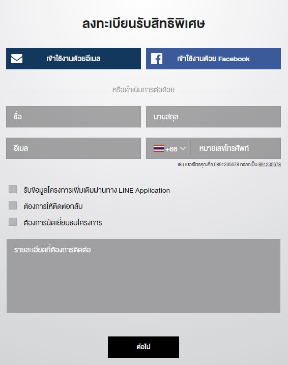 คลิกด้านล่างเพื่อลงทะเบียนรับสิทธิพิเศษ