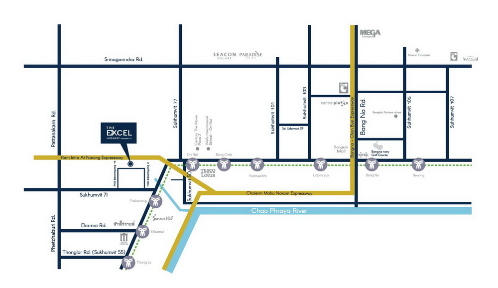 The Excel Hideaway Sukhumvit 71 ทำเลศักยภาพ เชื่อมต่อ Lifestyle การใช้ชีวิตในเมือง The Excel Hideaway Sukhumvit 71 ตั้งอยู่บนทำเลของการเชื่อมต่อกับ ทองหล่อ อ่อนนุช พื้นที่การใช้ Lifestyle ที่ครบครัน รายล้อมด้วยสิ่งอำนวยความสะดวกต่างๆ มากมาย อาทิ เช่น Habito Mall, Lotus อ่อนนุช, Big C อ่อนนุช, Rain Hill (โครงการอนาคต)