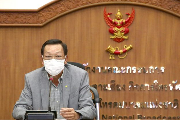 พลเอก สุกิจ ขมะสุนทร ประธาน กสทช. พันเอก ดร. นที ศุกลรัตน์ รองประธาน กสทช. นายฐากร ตัณฑสิทธิ์ เลขาธิการ กสทช. นายไตรรัตน์ วิริยะศิริกุล รองเลขาธิการ กสทช. ร่วมกันแถลงข่าวผลการประชุม กสทช. นัดประชุมวาระพิเศษเกี่ยวกับมาตรการช่วยเหลือประชาชนทุกระดับ
