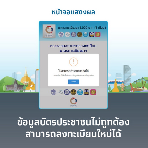 ข้อความระบุว่า ไม่สามารถทำรายการต่อได้ (ลงทะเบียนไม่สำเร็จ เนื่องจากข้อมูลบัตรประชาชนไม่ถูกต้อง)