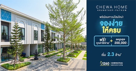 "ชีวาโฮม กรุงเทพ - ปทุม" พรีเมียมทาวน์โฮม 2 ชั้น รูปแบบใหม่ สไตล์ Art Deco ดีไซน์แตกต่างด้วยหน้ากว้าง 8.3 ม. เพดานสูง 3 ม. แรงบันดาลใจจากมหานครนิวยอร์ก เน้นความเรียบง่ายของรูปแบบ และลายเส้นที่พลิ้วไหว ทำเลติดกับถนนใหญ่ กรุงเทพ-ปทุมธานี ใกล้กับทางด่วนศรีรัช พบกับโปรโมชั่นพิเศษ ฟรีทุกค่าใช้จ่าย รับส่วนลดสูงสุด 200,000 บาท ราคาเริ่ม 2.3 ล้านบาท