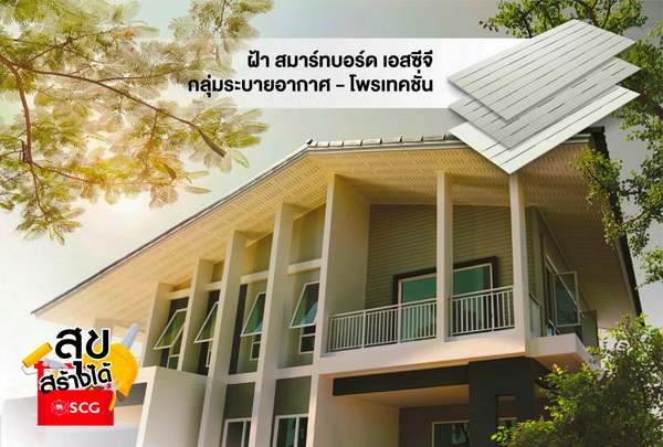 ระบบฝ้าชายคา การติดตั้งระบบฝ้าชายคาระบายอากาศ เป็นอีกหนึ่งวิธีที่ช่วยให้อากาศเย็นภายนอกไหลผ่านเข้าแทนที่อากาศร้อนภายใต้หลังคา ลดความร้อนภายในตัวบ้านได้ โดยควรเลือกฝ้าที่มีรูหรือช่องทางระบายอากาศและมีตาข่ายเพื่อป้องกันแมลงเข้าสู่ตัวบ้าน แข็งแรง และทนน้ำทนชื้นได้ดี ปัจจุบัน ฝ้าสมาร์ทบอร์ด เอสซีจี รุ่นโพรเทคชั่น สามารถป้องกันแมลงเพราะติดตาข่ายไฟเบอร์กลาสมาจากโรงงาน ช่วยให้มั่นใจได้ในคุณภาพทั้งแผ่นและตาข่าย อีกทั้งยังช่วยประหยัดเวลาและต้นทุนในการติดตั้งอีกด้วย รวมทั้ง บ้านเย็นเพราะมีรูระบายอากาศ มีหลากหลายรูปแบบ ทำให้สามารถสร้างแพทเทิร์นลวดลายต่างๆ ตามความชอบของเจ้าของบ้านได้อีกด้วย