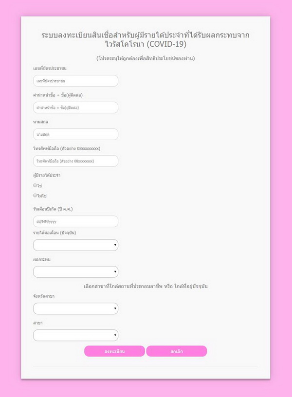 ขั้นตอนการลงทะเบียนกู้เงินฉุกเฉิน