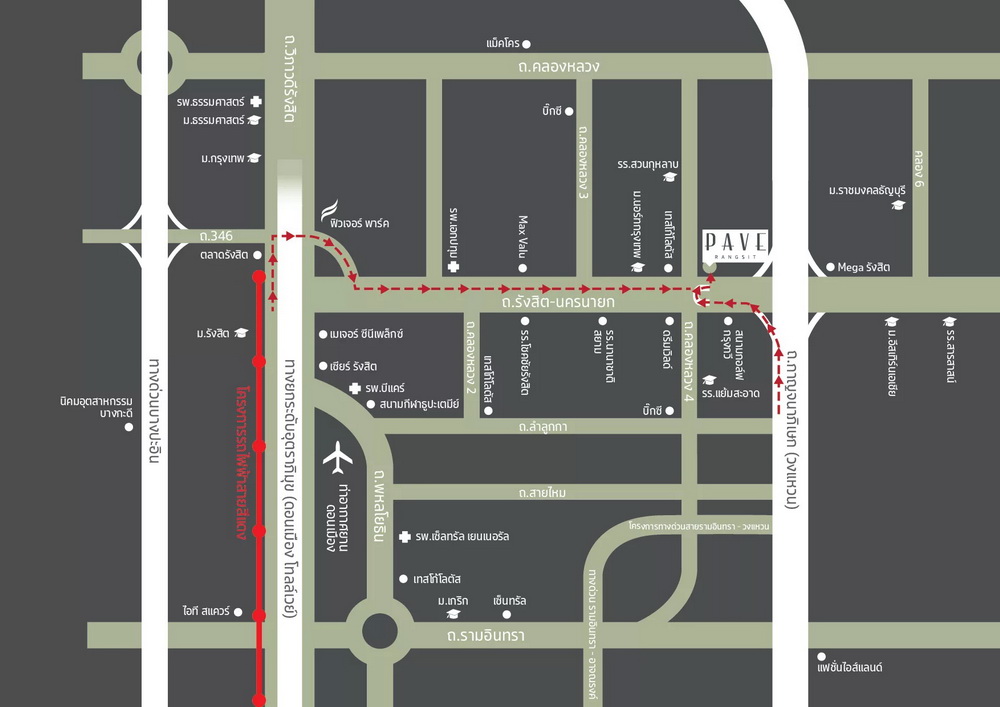 บ้านตัวอย่างหลังใหญ่ แต่งครบ ทำเลรังสิต-นครนายก "เพฟ รังสิต" บ้านตัวอย่างแต่งครบ พร้อมอยู่ Built-in ทั้งหลัง แอร์ทุกห้อง บนที่ดิน 93 ตร.วา รองรับจอดรถ 6 คัน บนทำเลศักยภาพ ติดถนนใหญ่รังสิต-นครนายก ใกล้ทางด่วยเพียง 1 นาที มาพร้อมสิ่งอำนวยความสะดวกครบครัน