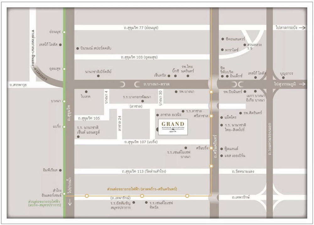 คฤหาสน์หรู ทำเลศักยภาพ ใกล้ถ.สุขุมวิท ใกล้ BTS แบริ่ง ส่วนลดสูงสุด 5 ล้าน แกรนด์ บางกอก บูเลอวาร์ด สุขุมวิท เปิดคฤหาสน์แปลงมุมหลังพิเศษ ใหญ่ที่สุด จอดรถ 5 คัน พร้อมสระว่ายน้ำส่วนตัว ใหญ่ที่สุดบนทำเล 706 ตร.ม. บนที่ดินกว่าครึ่งไร่ ฟังก์ชั่น 6 ห้องนอน 7 ห้องน้ำ 5 ที่จอดรถ พร้อมสระว่ายน้ำส่วนตัว และ เรือนรับรอง บนทำเลศักยภาพ เชื่อมต่อ ถ.สุขุมวิท, ถ.บางนา-ตราด, ศรีนครินทร์ และทางด่วนสู่ใจกลางเมือง ใกล้สถานีรถไฟฟ้าแบริ่ง และสถานีรถไฟฟ้าสายสีเหลืองโปรโมชั่นพิเศษรับส่วนลดสูงสุด 5 ล้านบาท*เดือน กันยายน 2563 นี้*ราคาเริ่ม 40 - 60 ล้านบาท*