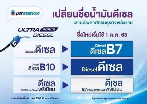 สำหรับการที่รัฐบาลได้กำหนดนโยบายให้น้ำมันดีเซลหมุนเร็วที่ผสมไบโอดีเซลในสัดส่วนร้อยละ 10 โดยปริมาตร เป็นน้ำมันดีเซลหมุนเร็วพื้นฐานของประเทศ และให้เรียกว่า “น้ำมันดีเซลหมุนเร็วธรรมดา” ซึ่งสามารถใช้ได้กับรถยนต์ส่วนใหญ่ตั้งแต่ปี 2010 เป็นต้นไป โดยกำหนดให้น้ำมันดีเซลหมุนเร็วบี 7 (B7) ใช้สำหรับรถเก่าและรถยุโรป และน้ำมันดีเซลหมุนเร็วบี 20 (B20) สำหรับรถบรรทุกขนาดใหญ่ ตั้งแต่วันที่ 1 ตุลาคม 2563 เป็นต้นไป ทั้งนี้ เพื่อเป็นการส่งเสริมให้เกิดการใช้ประโยชน์จากผลผลิตทางการเกษตรให้มากขึ้น โดยเฉพาะน้ำมันปาล์มดิบที่มีราคาตกต่ำและล้นตลาด และยังช่วยลดมลพิษ ปริมาณฝุ่น PM 2.5 เนื่องจากการใช้เชื้อเพลิงชีวภาพในสัดส่วนที่สูงขึ้น