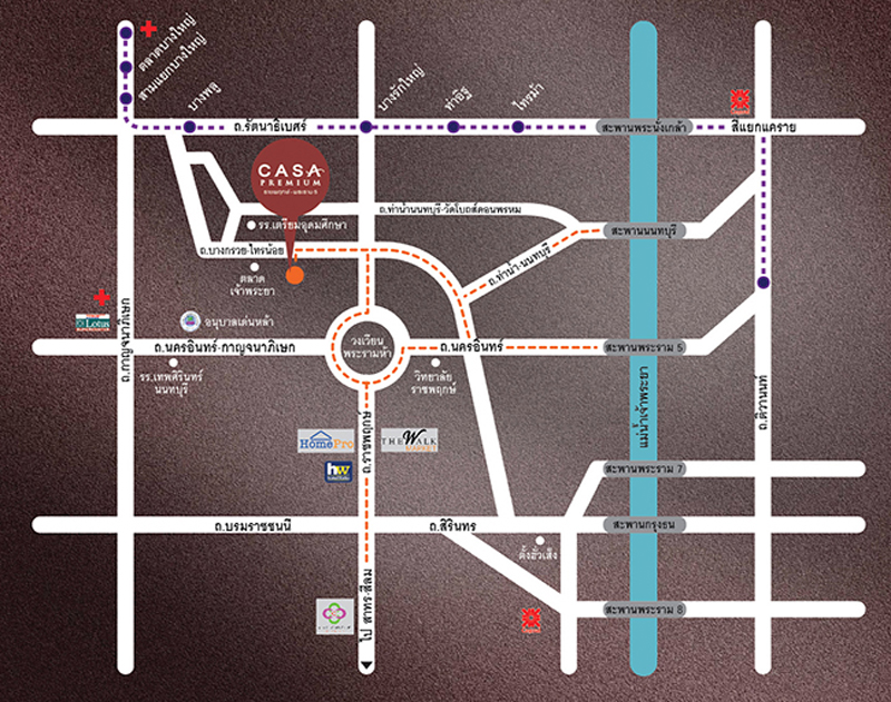 คลิกดูแผนที่โครงการ"คาซ่า พรีเมี่ยม ราชพฤกษ์ - พระราม 5"