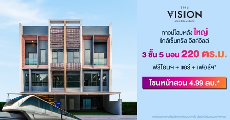 "เดอะ วิชั่น ลาดพร้าว - นวมินทร์" ทาวน์โฮมดีไซน์ใหม่ ใหญ่ทุกห้องนอน ทำเลทองย่านลาดพร้าว - นวมินทร์ เทียบเท่าบ้านเดี่ยว กว้างสุด 220 ตร.ม. 5 ห้องนอน 4 ห้องน้ำ ฟังก์ชั่นครบ วิวสวนหน้าคลับเฮาส์ พื้นที่มากขึ้น... ความสุขมากขึ้น ใกล้ทางด่วนรามอินทรา-อาจณรงค์ และกาญจนาภิเษก ใกล้รถไฟฟ้าถึง 4 สาย