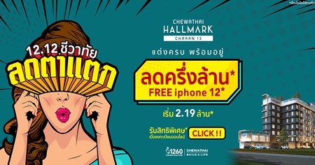 ลดตาแตกกว่าครึ่งล้าน คอนโด ใกล้ MRT 400 ม. ฟรี! iPhone 12 ทุกยูนิต