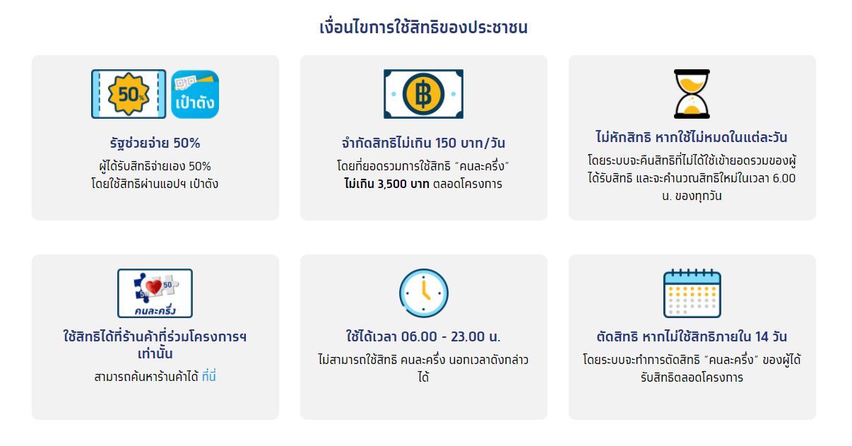 คลิกดูรูปภาพใหญ่ เงื่อนไขการใช้สิทธิ์ของประชาชน คนละครึ่ง เฟส 2