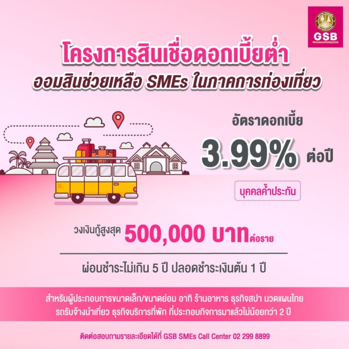 4. โครงการสินเชื่อดอกเบี้ยต่ำ ช่วยเหลือ SMEs ภาคท่องเที่ยว