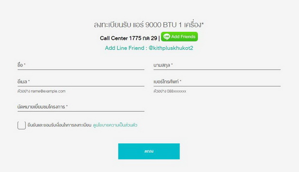 คลิกด้านล่างเพื่อลงทะเบียนรับ แอร์ 9000 BTU 1 เครื่อง*