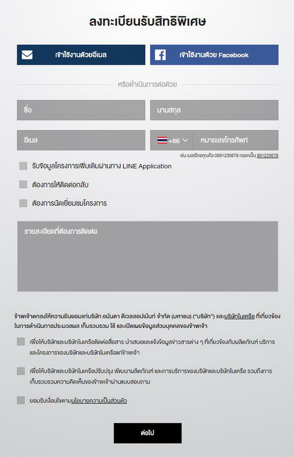 คลิกด้านล่างเพื่อลงทะเบียนรับสิทธิพิเศษ