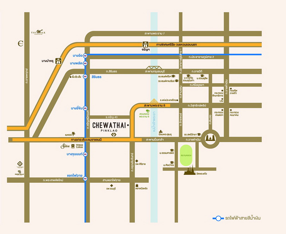 Chewathai ปิ่นเกล้า จาก ชีวาทัย ตั้งอยู่ติดกับถนนอรุณอมรินทร์ แขวงบางยี่ขัน เขตบางพลัด กรุงเทพฯ ใช้ชีวิตแบบ Enjoy Life 360 องศา สัมผัสนิยามของคำว่า "ใกล้ทุกสิ่ง" เดินทางเข้าสู่ใจกลางเมืองที่สะดวกสบายจากสะพานพระปิ่นเกล้าและสะพานพระราม 8 ใกล้ทางคู่ขนานลอยฟ้าบรมราชชนนี ใกล้ทางด่วนศรีรัชและทางด่วนศรีรัช-วงแหวนรอบนอก โครงการอยู่ใกล้รถไฟฟ้าสายสีน้ำเงินสถานีบางยี่ขัน ใกล้สวนหลวงพระราม 8 รายล้อมไปด้วยสิ่งอำนวยความสะดวกครบครันทั้งห้างสรรพสินค้า สถานศึกษา โรงพยาบาล และสถานที่ราชการต่างๆ
