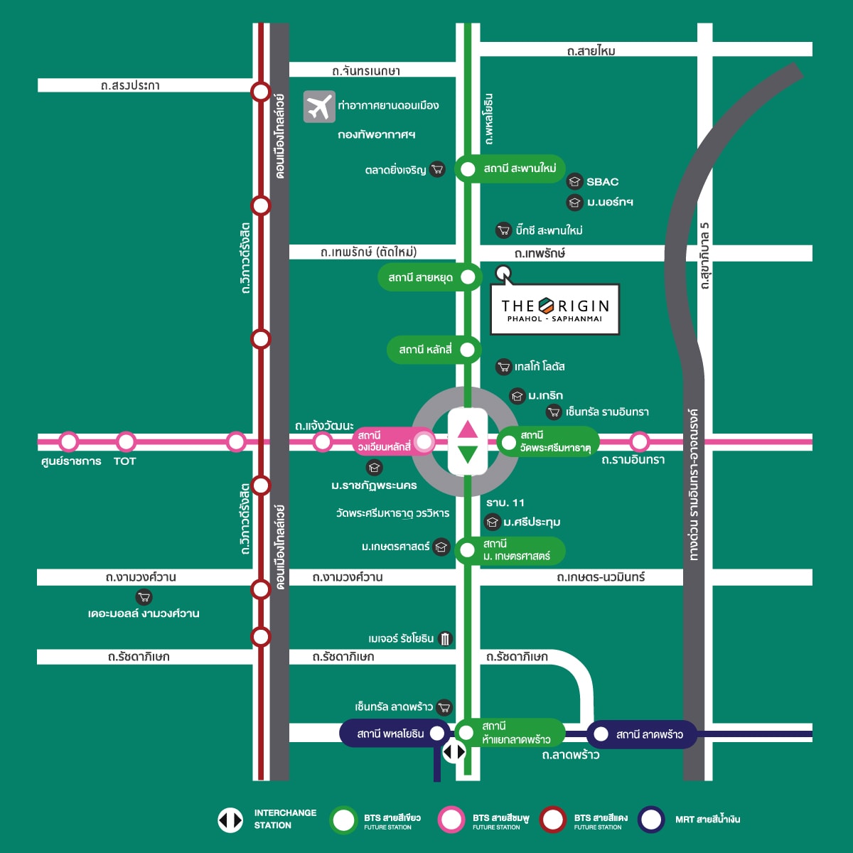 คลิกดูแผนที่โครงการ"ดิ ออริจิ้น พหลฯ-สะพานใหม่"