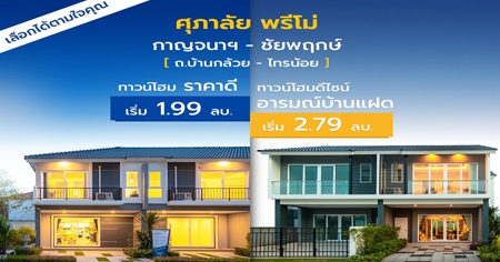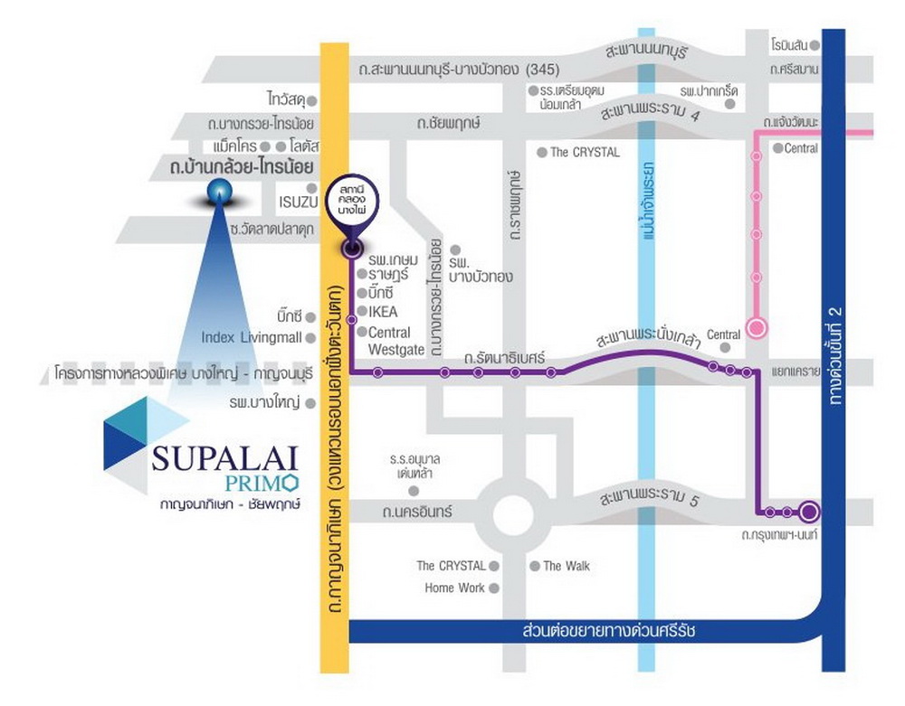 ทาวน์โฮม อารมณ์บ้านแฝด ใกล้รถไฟฟ้า + เซ็นทรัล เวสต์เกต ศุภาลัย พรีโม่ กาญจนาฯ-ชัยพฤกษ์ ทาวน์โฮมอารมณ์บ้านแฝด เฟสใหม่ใกล้สวน พื้นที่ใช้สอยขนาดใหญ่ 113-125 ตร.ม. 3 ห้องนอน 2 ห้องน้ำ จอดรถ 2 คัน ทำเลใจกลางชุมชน (ถ.บ้านกล้วย-ไทรน้อย) ใกล้รถไฟฟ้า ใกล้เซ็นทรัล เวสต์เกตโปรโมชั่นพิเศษฟรี ค่าใช้จ่ายวันโอน กู้ไม่ผ่านคืนเงิน ราคาเริ่ม 1.99 ล้านบาท*