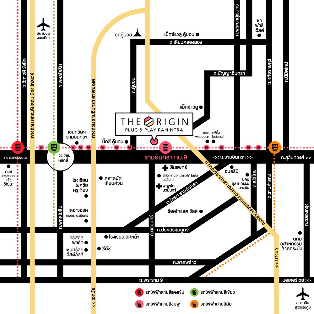 คลิกดูแผนที่โครงการ"ดิ ออริจิ้น ปลั๊ก แอนด์ เพลย์ รามอินทรา"