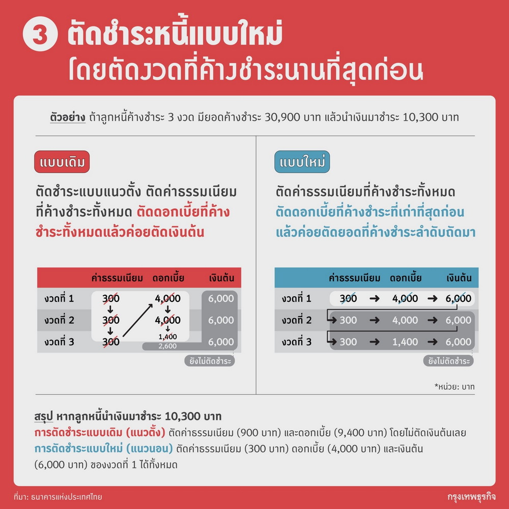 3. การกำหนดลำดับการตัดชำระหนี้โดยให้ "ตัดค่างวดที่ค้างชำระนานที่สุดเป็นลำดับแรก"
