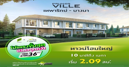 พฤกษาวิลล์ โปรแรงชั้นสุด ชีวิตสนุกกว่า อยู่ฟรีสูงสุด 36 เดือน* "พฤกษาวิลล์ เทพารักษ์ - บางนา" ทาวน์โฮมหลังใหญ่ หน้ากว้าง 5.7 เมตร ฟังก์ชั่นบ้านเดี่ยว พร้อมสวนสีเขียวและฟิตเนส บนทำเลใกล้ถนนเทพารักษ์ ใกล้สนามบินสุวรรณภูมิ เพียง 10 นาทีถึง เมกา บางนา